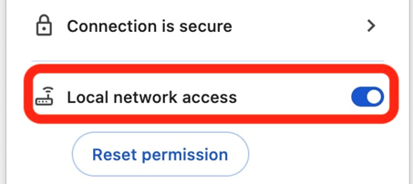 - Click on the "Access to Local Network" switch in the menu that appears to move the circle to the right.